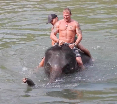 My highlight came when I was in the river holding on for dear life as my elephant was submerging the both of us under water while blowing large amounts of water from its trunk. What a life experience it was to get this opportunity in the middle of the jungle and a small river outside of Luang Prabang. My heart did go out to these creatures as I know that daily they are used to attract people from far and wide to ride them and experience the same adventure as I did today. I know they are treated well, but whenever I see an animal caged or used to make money it makes me wish they were free to roam in their natural habitat. But these elephants seemed happy, and happier when they got to swim because of the heat. Laos is a very poor country so I understand that this business is a must to make money and feed their poverty stricken economy. The environment was clean and friendly so that’s all that mattered. Peaceful animals and a truly amazing day. Tomorrow a change of plans, it’s off to Cambodia where more adventure and dreams await. Siem Reap here I come!!!…
